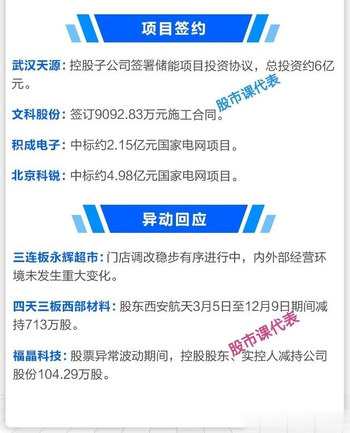 此外,永辉超市、西部材料等股价异动公司回应经营或股东减持情况。整体来看,市场在算力、储能、电网及消费等领域持续活跃。